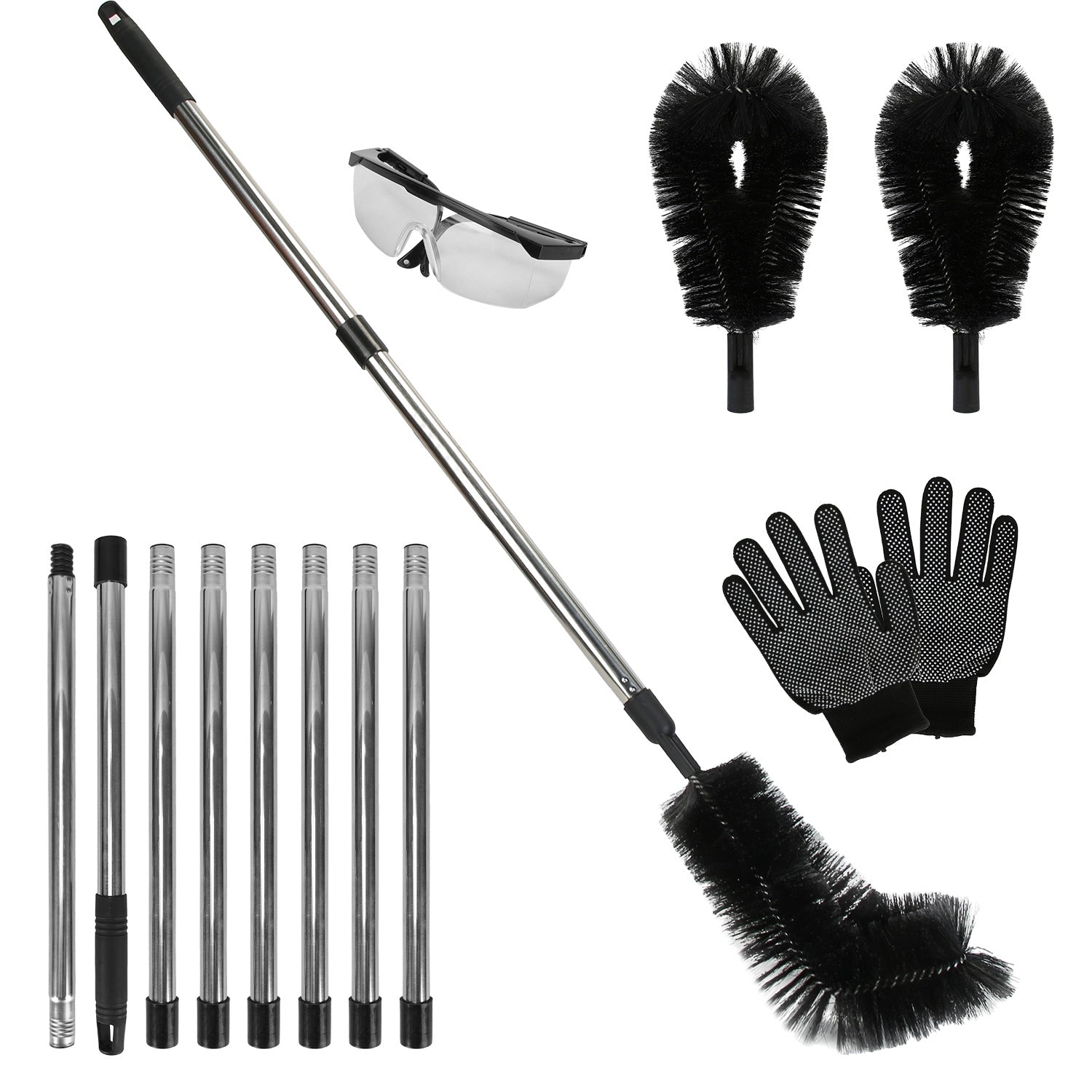 10.5FT Gutter Cleaning Brush With Telescoping Handle Rain Gutter Cleaner Extendable Gutter Cleaning Tool From The Ground with 2 Angled Brushes Anti-sl