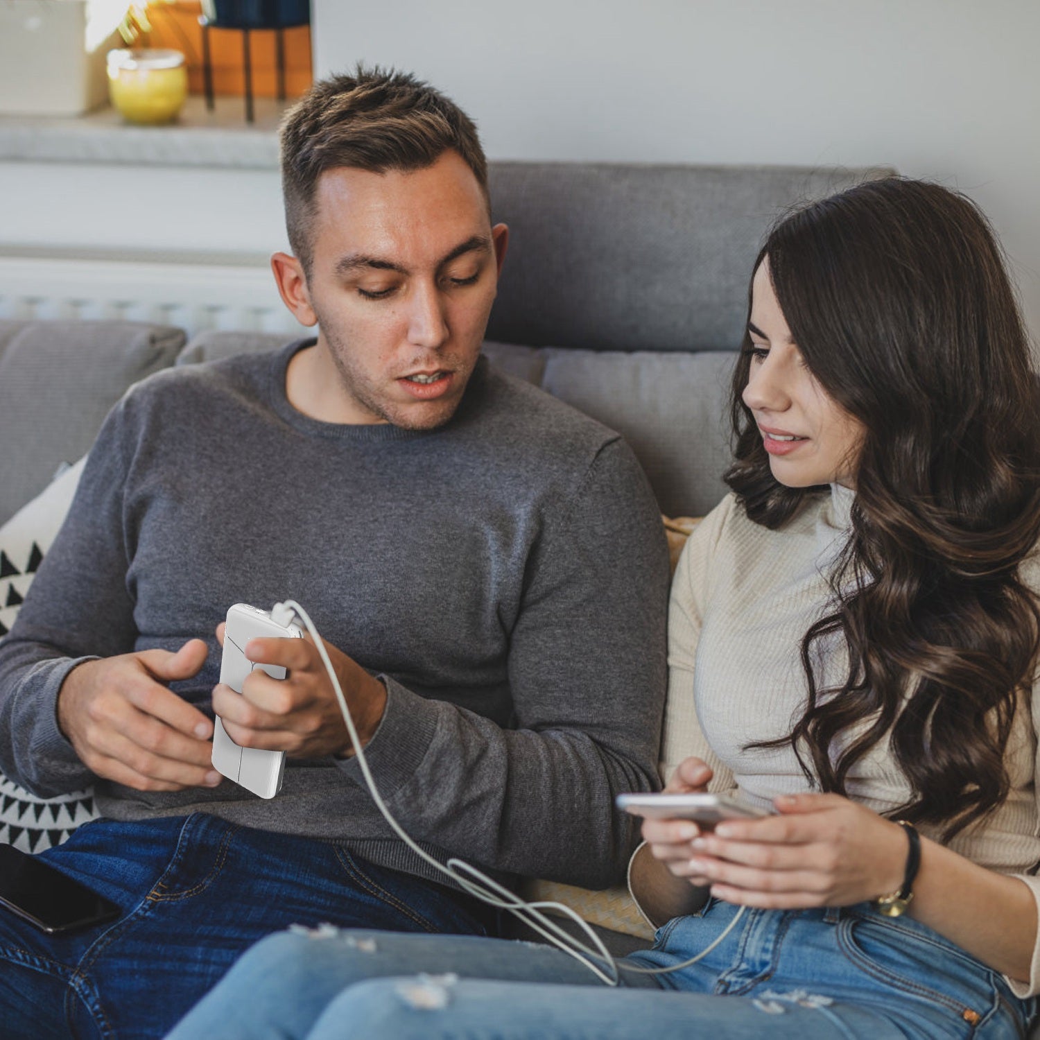 10000Mah Power Bank Portable Charger With Us Plug 2 Built-In Cables External Ba