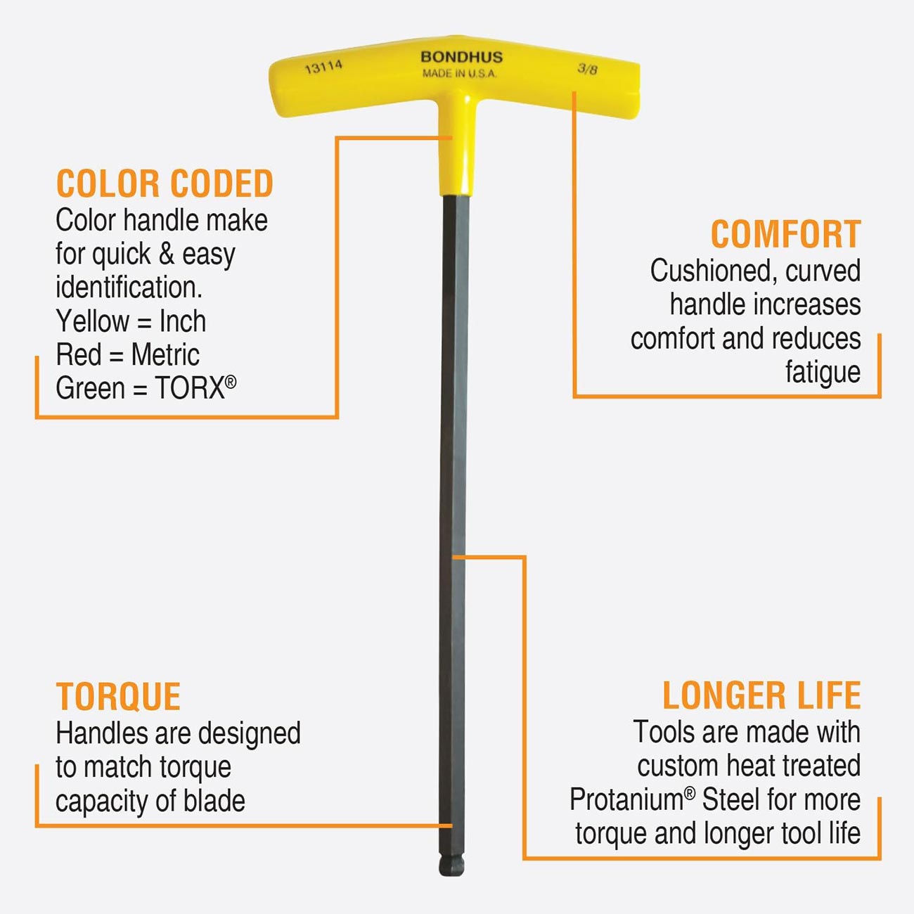 Bondhus Balldriver SAE Ball End HEX Long T-Wrenches 3/32" to 3/8" (10 Piece)