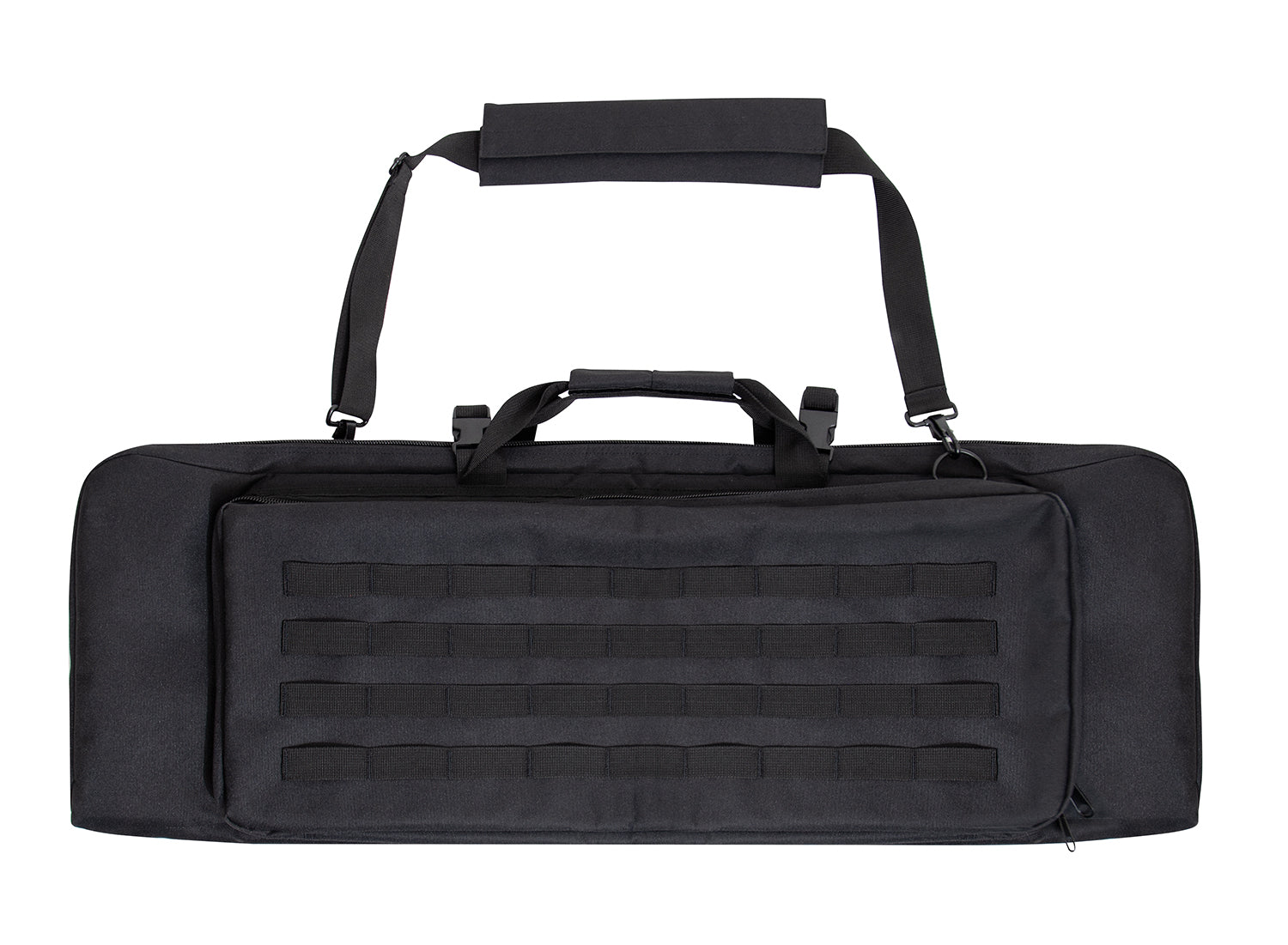 Store and carry your rifle with confidence with Low Profile 36 Inch Rifle Case. This reliable gun case is perfect for hunters, MilSim players, and more. The rifle case main compartment features two elastic straps and two covers to secure your rifle and magazines. The outside pocket on the soft rifle case with four rows of MOLLE webbing for mounting mag pouches and other MOLLE accessories. The AR gun case outside pocket features two inner slit pockets for storing sidearms, additional mags, range gear, and more. 3/4 inch thick padding in the tactical rifle case insulates your rifle and accessories for added protection, while two strong buckles support the lockable two-way zipper closures to keep the discreet rifle case closed. An adjustable and removable web strap can attach to D-rings on the back of the tactical gun case for multiple ways to carry.