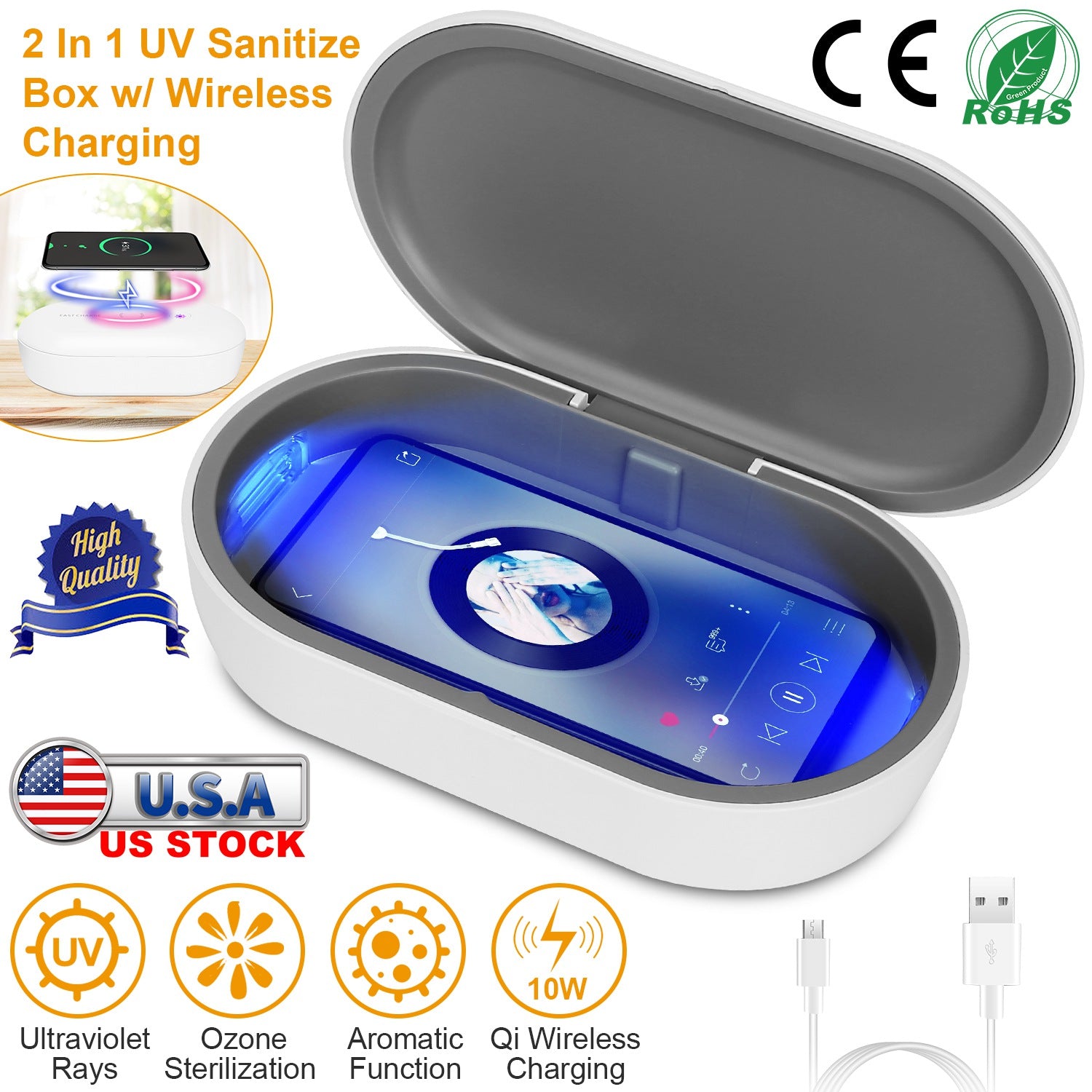 Uv Light Sanitizer Box Portable 10W Phone Wireless Charging Disinfection Lamp W